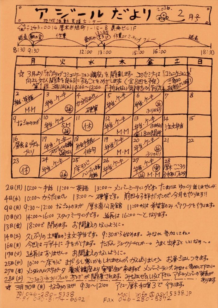 地域活動支援センター アジールは精神医療を必要としたり、心に傷を受け、生活の中で生きづらさを抱えている女性のために「安心できる居場所」を合い言葉に作られた居場所です。