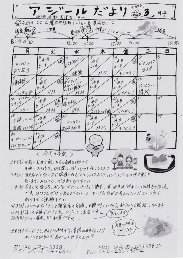 地域活動支援センター アジールは精神医療を必要としたり、心に傷を受け、生活の中で生きづらさを抱えている女性のために「安心できる居場所」を合い言葉に作られた居場所です。
